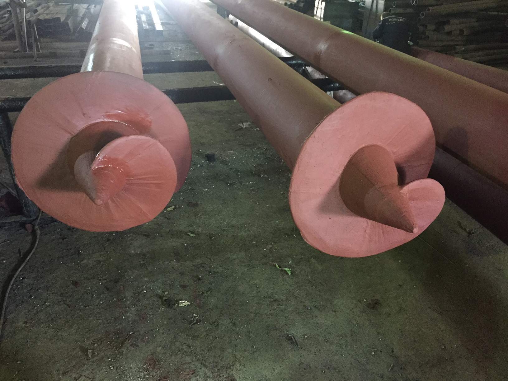 Фото свай и анкеров винтовых серии 3.407.9-158 изготовленных на нашем заводе в Алма-Ате: